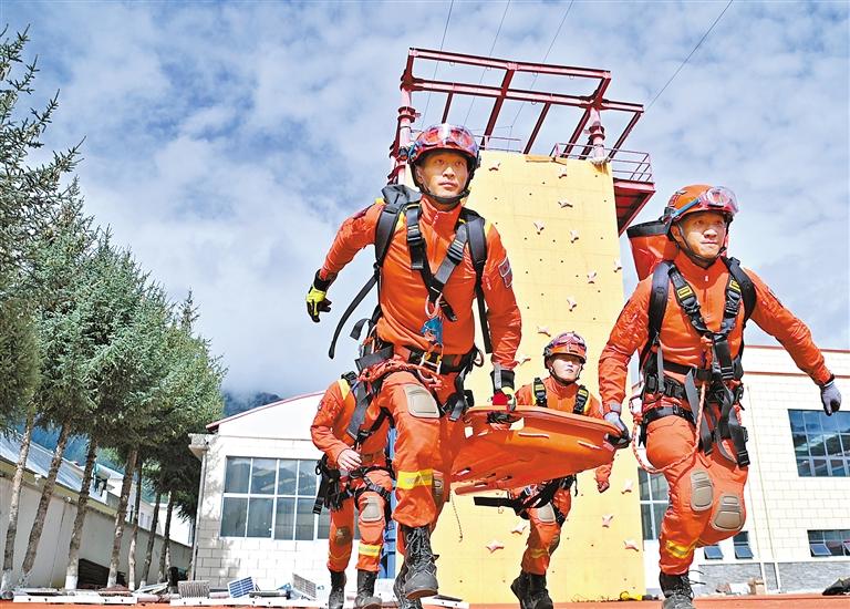 開展斜向救援技術(shù)訓(xùn)練。本報通訊員 西繞拉翁 記者 謝筱純 王珊 攝