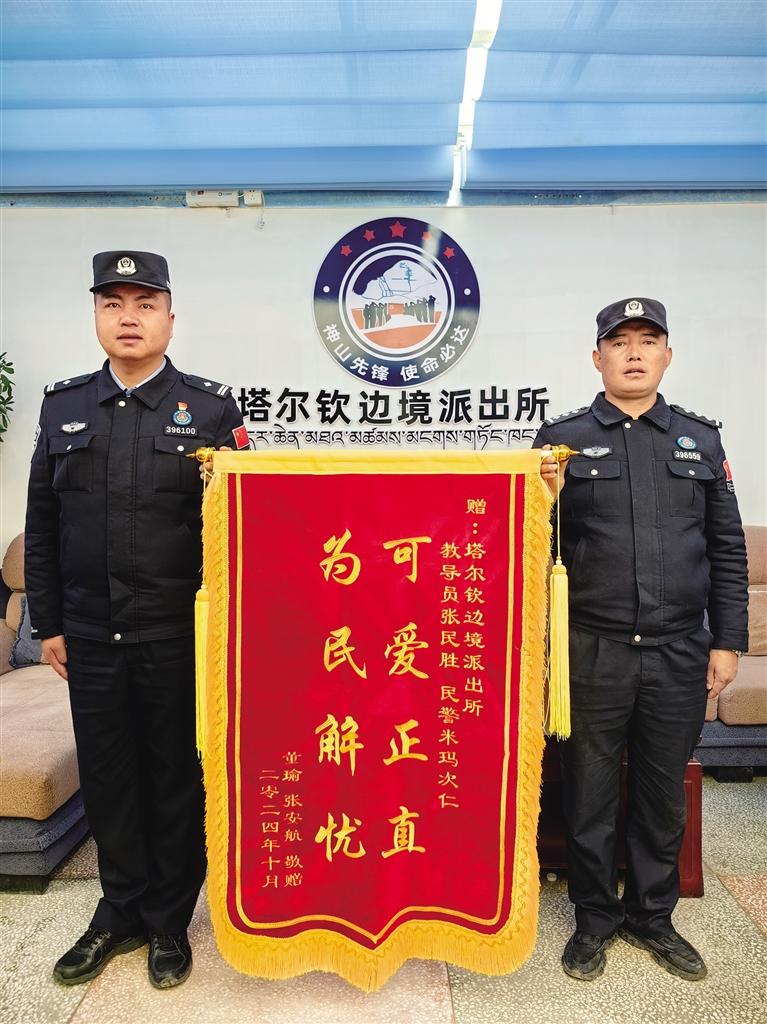 2024年10月12日,日喀則邊境管理支隊扎西宗邊境派出所收到了北京游客楊先生寄來的錦旗,錦旗上印著“長的帥 破案快 真衛(wèi)士 保平安”。楊先生通過這樣的方式,對扎西宗邊境派出所民警快速反應、專業(yè)執(zhí)法和熱情服務表示衷心的感謝。