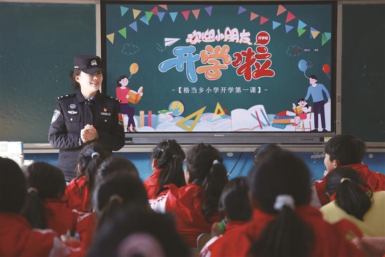 “大家知道今天是什么日子嗎?”課堂開始,格當(dāng)邊境派出所民警李倩向臺(tái)下的同學(xué)們提問道,稚嫩的聲音此起彼伏:“是開學(xué)第一天!”“是春天來了!”李倩笑著說:“沒錯(cuò),春天是萬物生長(zhǎng)的季節(jié),也是我們開啟新學(xué)期、學(xué)習(xí)新知識(shí)的好時(shí)光。而今天,我們還要一起學(xué)習(xí)一項(xiàng)特別重要的知識(shí)——法律,它就像我們身邊的守護(hù)神,能保護(hù)我們健康快樂地成長(zhǎng)。”她以提問互動(dòng)的方式迅速拉近了與同學(xué)們的距離,原本有些拘謹(jǐn)?shù)恼n堂瞬間活躍起來。