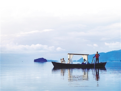 中國(guó)游客在泰國(guó)南部甲米府蘭塔島近海搭乘小船拍攝日出。 本報(bào)記者 張矜若攝
