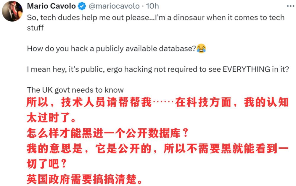 更重要的是,相關(guān)政客言論中的邏輯謬誤也讓人不忍直視。脫口秀特意截取了英國議會議員帕特·麥克法登的提問:“副首相為什么認(rèn)為中國政府會去黑一個公開數(shù)據(jù)庫?”這也讓美國作家馬意駿忍俊不禁: