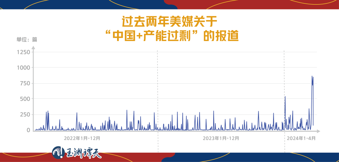 檢索美媒同時(shí)提及“中國”“產(chǎn)能過?!钡膱?bào)道,從數(shù)量變化中,可以看出,所謂中國“產(chǎn)能過剩”的話題,從2022年就已經(jīng)開始。