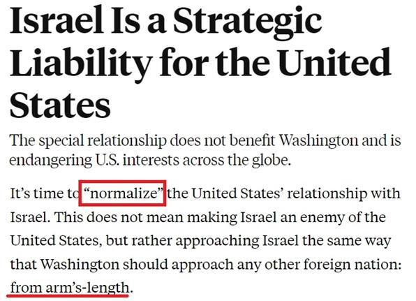 然而,美國《外交政策》雜志刊文分析,以色列如今已成為美國的戰(zhàn)略負(fù)擔(dān),現(xiàn)在到了推動美國同以色列關(guān)系"正常化"的時候了。美國對待以色列,要像其對待任何其他國家一樣:保持距離。