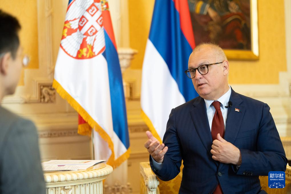 5月2日,在塞爾維亞貝爾格萊德,塞爾維亞建設(shè)、交通和基礎(chǔ)設(shè)施部長(zhǎng)韋西奇接受新華社記者專訪。新華社記者 李京 攝