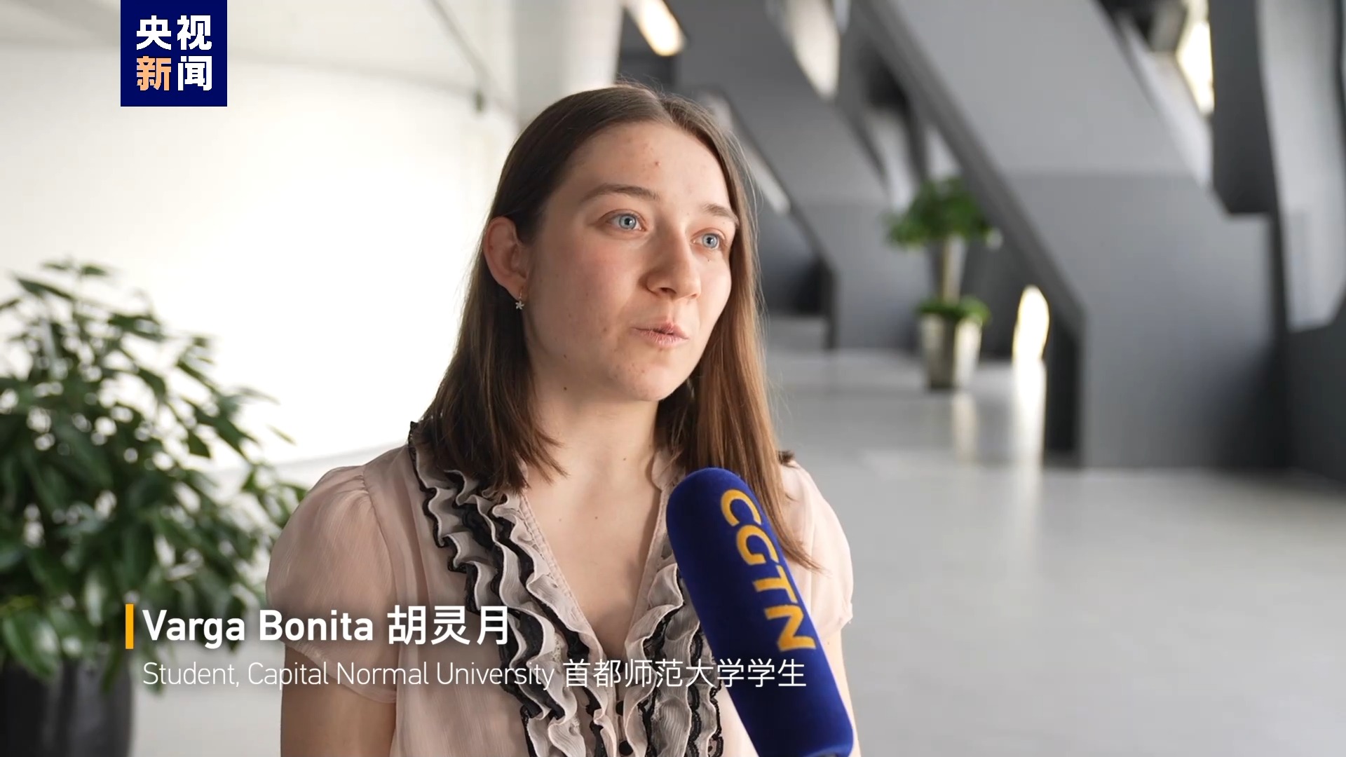 首都師范大學學生 瓦爾加·博尼塔 (又名 胡靈月):(這是)我和宋智孝第二次獲得大使獎學金。 我們對此感到非常高興和興奮。 我們想分享我們的喜悅。所以,我們給習近平主席寫了一封信。