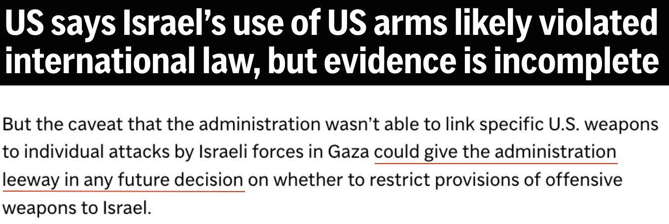 美聯(lián)社的報(bào)道直擊要害:是為今后繼續(xù)對(duì)以色列提供軍援留下余地。