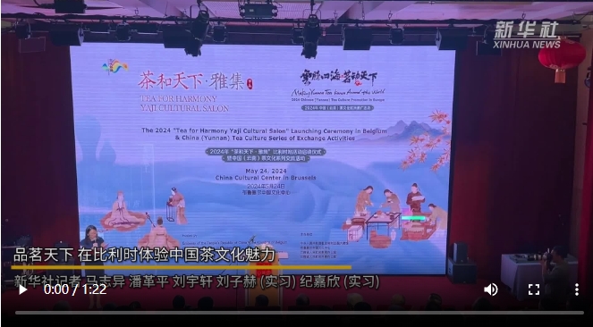 “茶和天下·雅集”云南茶文化交流活動24日在比利時布魯塞爾中國文化中心舉辦?;顒右圆铻槊?,通過茶主題文藝展演、茶文化詩詞分享會、中國國家級非遺技藝展示和體驗等多種形式,吸引比利時民眾感受中國茶文化的魅力。