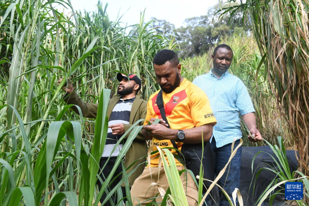 2024年3月28日,在位于福州的福建農(nóng)林大學(xué),來(lái)自盧旺達(dá)和巴布亞新幾內(nèi)亞的學(xué)生在“國(guó)際菌草苑”內(nèi)查看菌草長(zhǎng)勢(shì)。新華社記者 林善傳 攝
