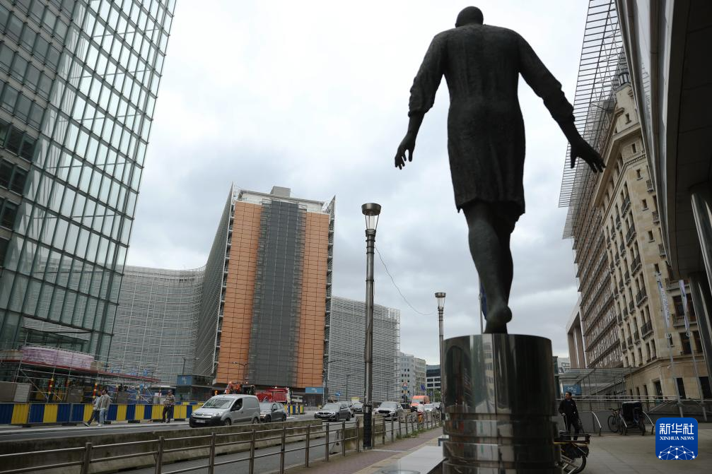 2024年6月3日,在比利時(shí)布魯塞爾,車(chē)輛駛過(guò)歐盟委員會(huì)大樓。新華社記者 趙丁喆 攝