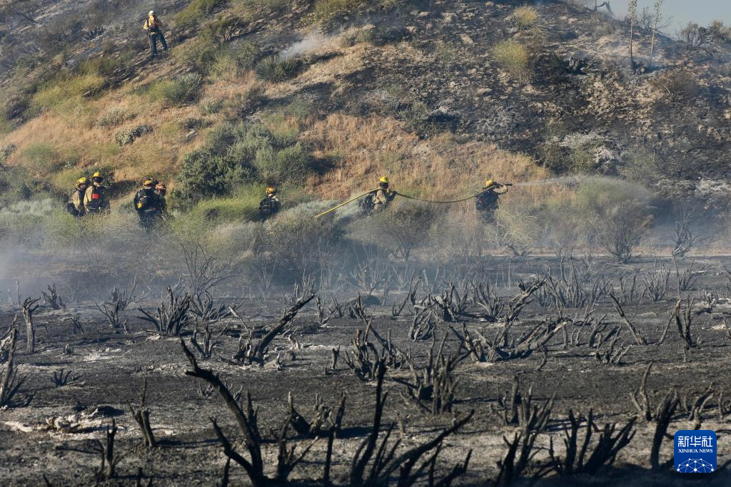 6月16日,消防隊(duì)員在美國加利福尼亞州洛杉磯縣西北部的戈曼地區(qū)進(jìn)行滅火作業(yè)。