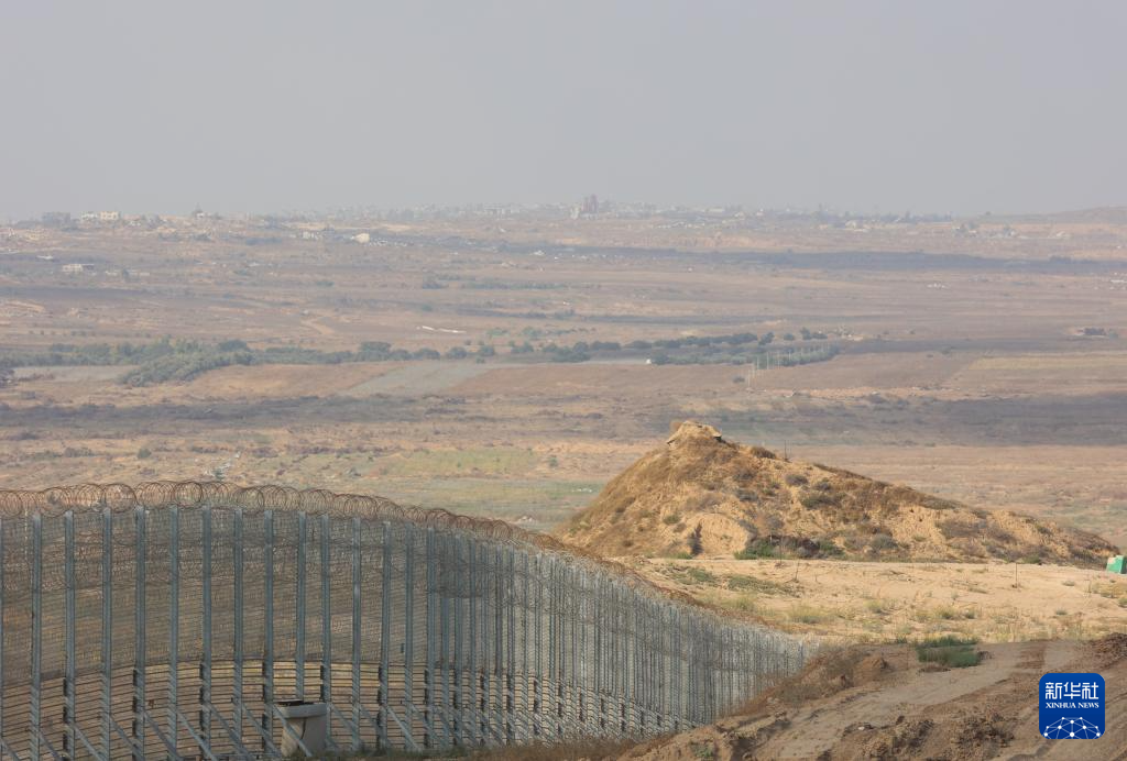 這是6月23日在以色列與加沙邊境以方一側(cè)拍攝的加沙地帶隔離設施。新華社發(fā)(吉爾·科恩·馬根 攝)