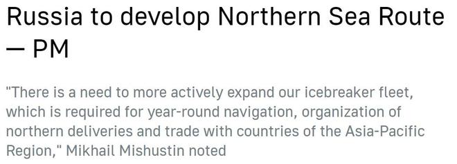 俄總理米舒斯京曾在政府會議上強調,跨經北極的北方海路對于向俄北部運送物資、向世界市場輸送金屬和能源、進行亞洲和歐洲之間的過境運輸來說都非常重要,尤其是在西方制裁之下更是如此。因此,"有必要更積極地擴大俄羅斯的破冰船隊"。