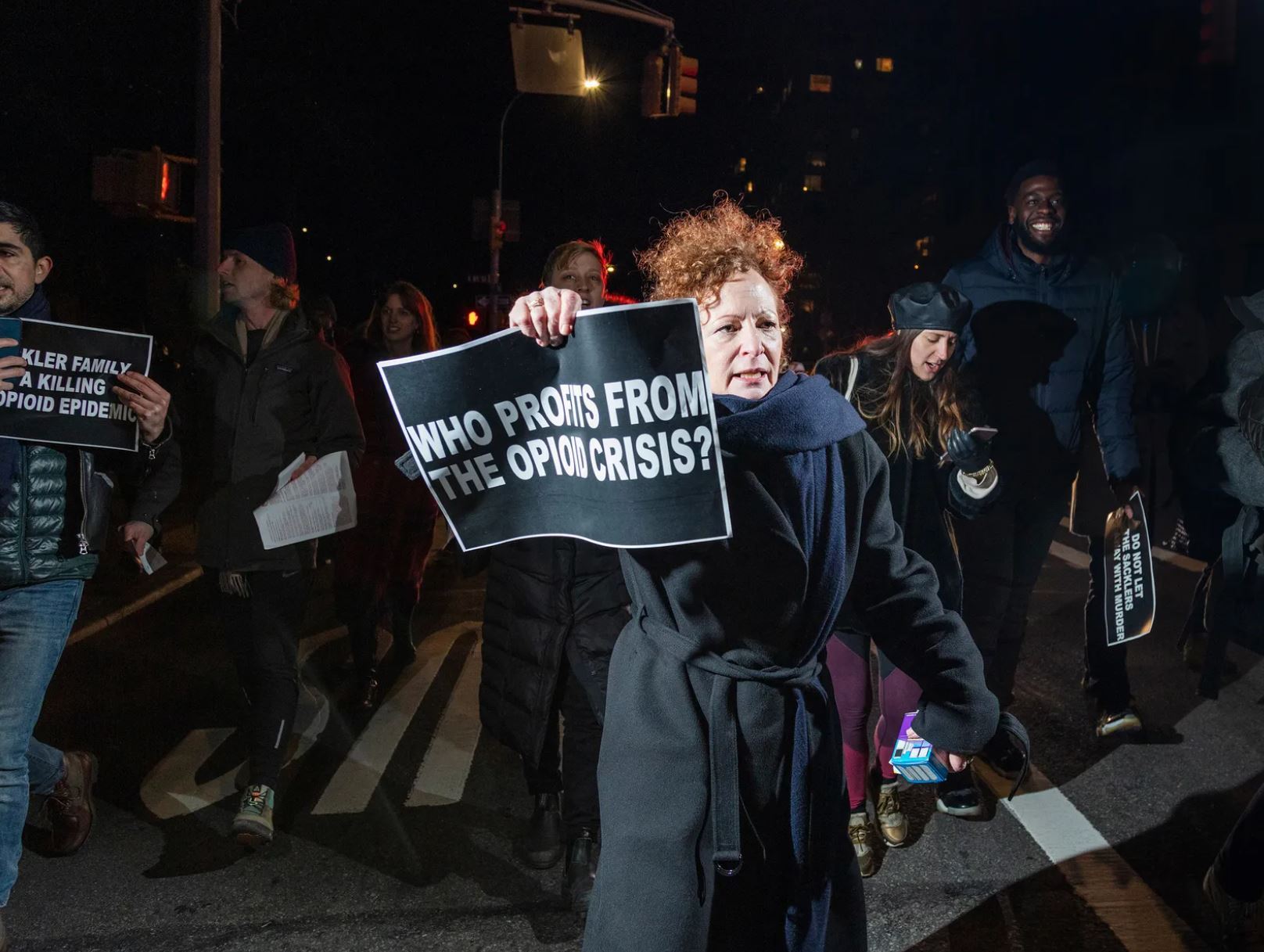 2018年,南·戈爾丁召集了許多跟她一樣的藥物成癮受害者,成立了藥物干預組織“疼痛”。在幫助飽受藥物成癮摧殘的人們走出泥潭的同時,也組織他們針對與薩克勒家族有合作的博物館發(fā)起一系列的抗議活動。