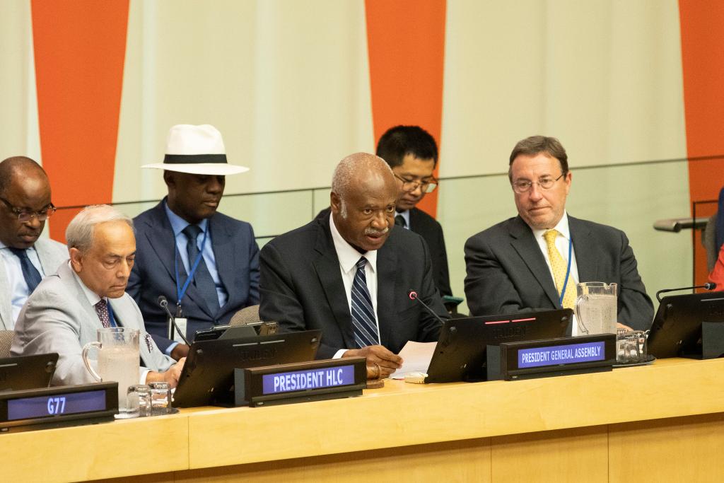 9月12日,在位于紐約的聯(lián)合國總部,第79屆聯(lián)合國大會主席菲勒蒙·揚(前排中)在聯(lián)合國南南合作日高級別討論會上致辭。新華社記者 謝鍔 攝
