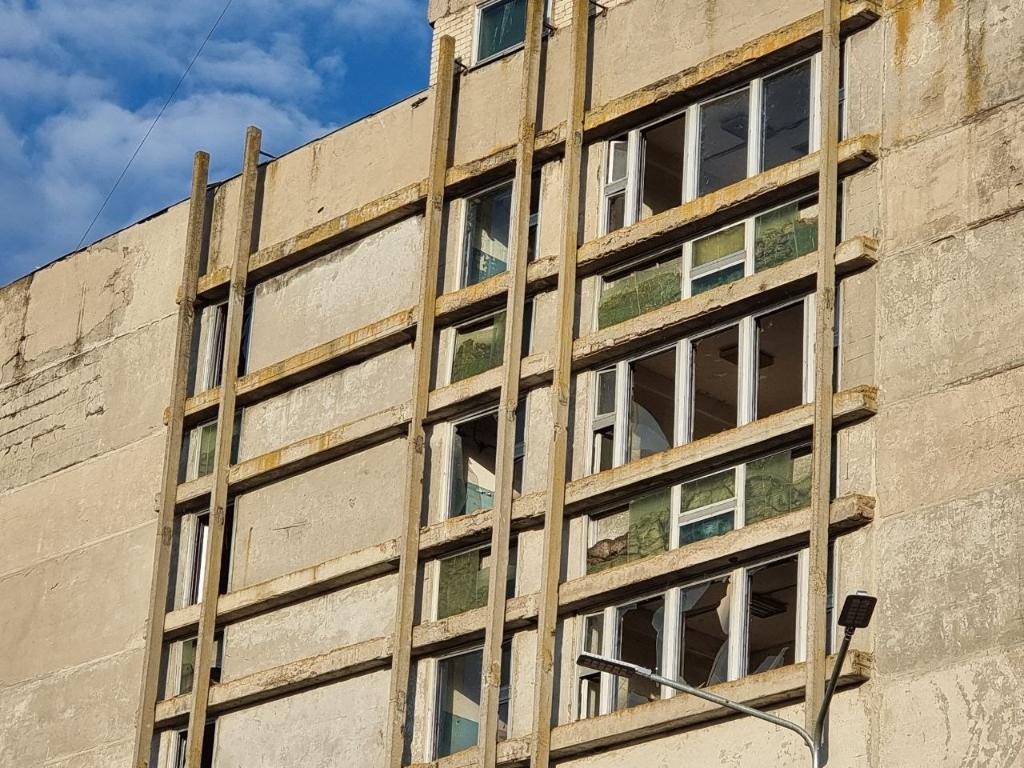 這是9月10日在烏克蘭切爾卡瑟州拍攝的在無(wú)人機(jī)爆炸沖擊中受損的建筑。新華社發(fā)