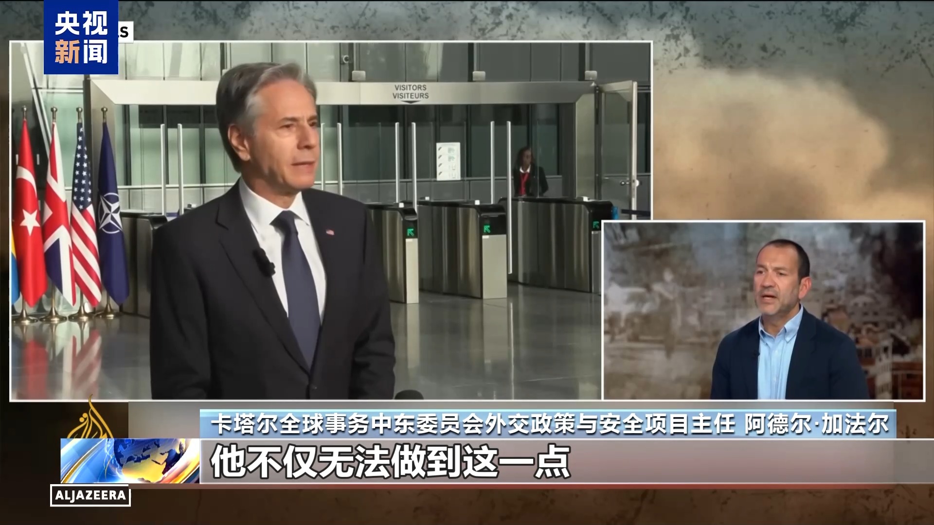 卡塔爾全球事務中東委員會外交政策與安全項目主任 阿德爾·加法爾:過去一年多布林肯已經(jīng)去了中東至少11次,和中東國家領導人會面,他試圖推動以色列結(jié)束戰(zhàn)爭,但到目前為止,他不僅無法做到這一點,而且美國還在外交政策上偏袒以色列,不斷提供武器和資金支持。