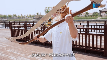 麒麟刀是傳統(tǒng)器械的一種,屬于長(zhǎng)兵器,全套動(dòng)作以劈、砍、斬、撩、掛、挑、勻、掃為主。在可欣的眼中,麒麟刀很大也很重,但動(dòng)作有氣勢(shì),在習(xí)練過程中體會(huì)到了中華傳統(tǒng)武術(shù)的精神和魅力。