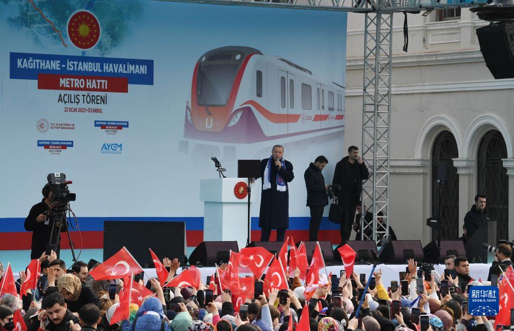 2023年1月22日,土耳其總統(tǒng)埃爾多安出席伊斯坦布爾新機(jī)場(chǎng)線開通儀式。(圖源:新華社)