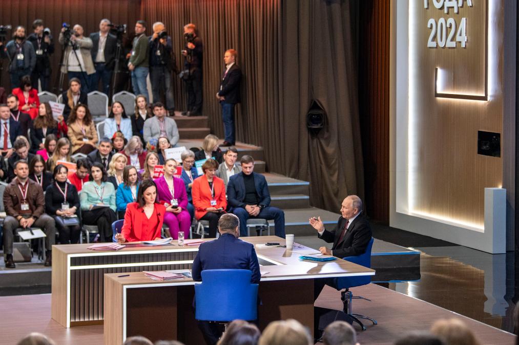 12月19日,在俄羅斯首都莫斯科,俄羅斯總統(tǒng)普京在“年度盤點(diǎn)”活動(dòng)上講話。新華社記者白雪騏攝
