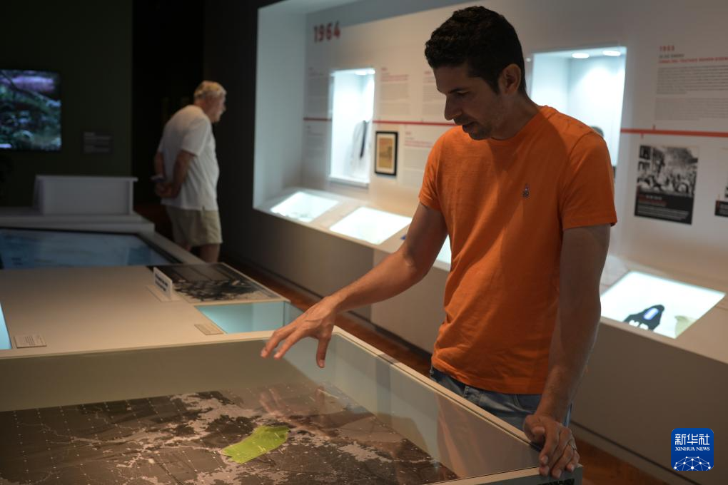 12月18日,在巴拿馬首都巴拿馬城,巴拿馬攝影師阿爾弗雷多·馬蒂斯在巴拿馬運河博物館“未爆的炸彈”展覽上進(jìn)行講解。新華社記者 陳昊佺 攝