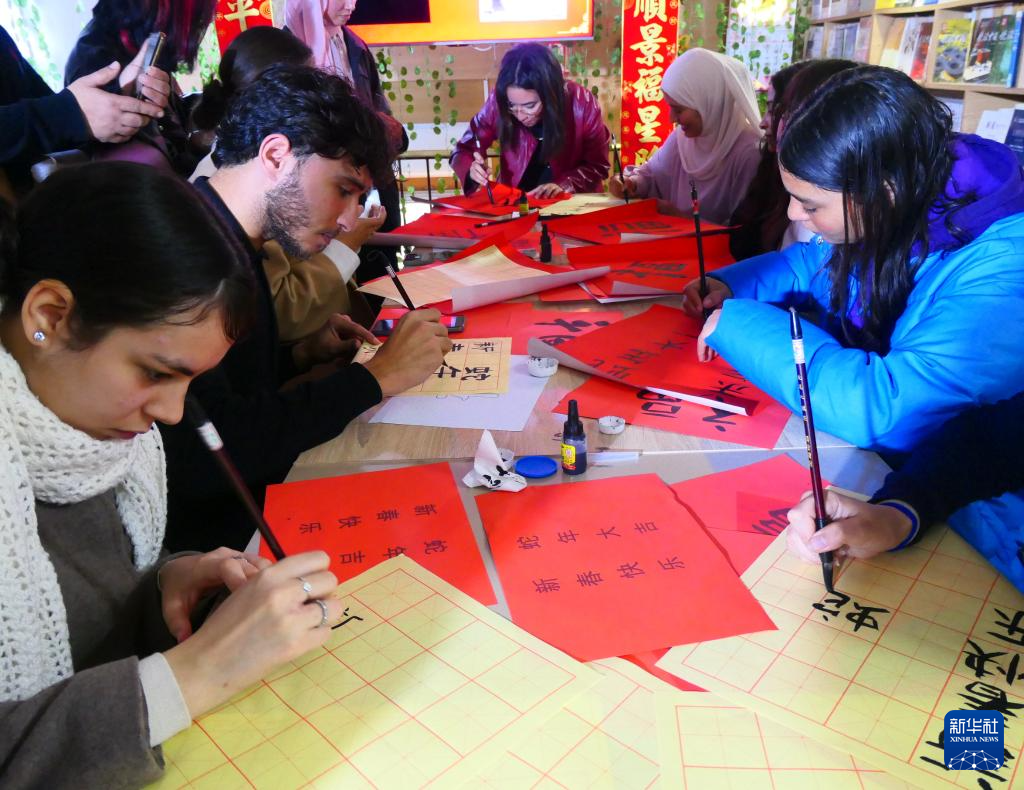 春節(jié)期間,突尼斯東方知識書店舉行了春節(jié)相關(guān)文化活動,參與者通過觀看視頻短片、有獎問答、寫福字等活動了解中國春節(jié)常識并親身體會中國年味。突尼斯迦太基大學(xué)高等語言學(xué)院中文專業(yè)學(xué)生興致勃勃地演唱了《月亮代表我的心》等中文歌曲。