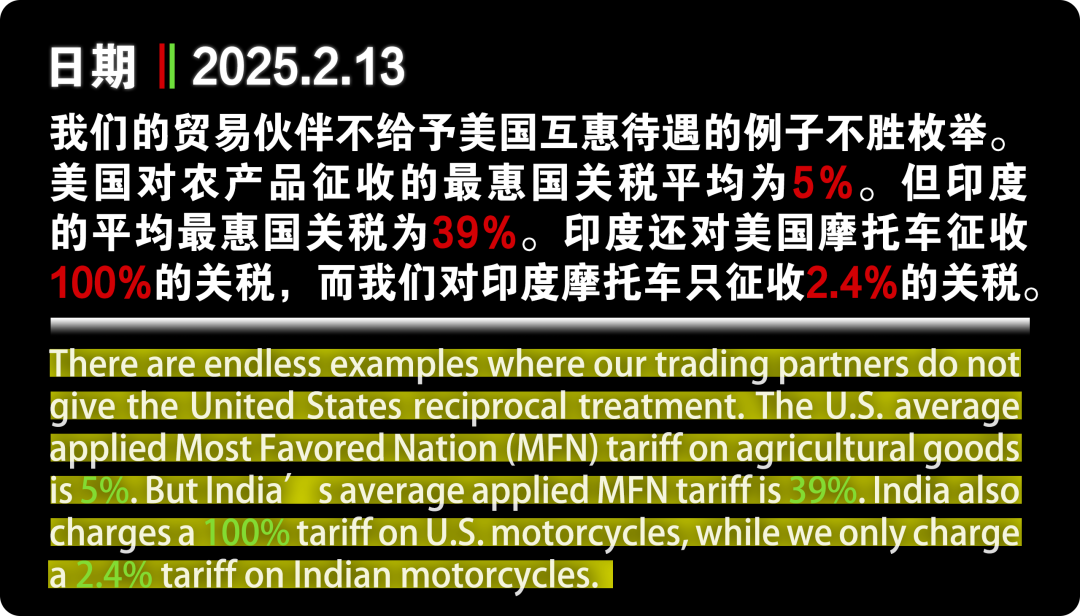 當?shù)貢r間2月13日,特朗普宣布了最新的關(guān)稅決定:在未來幾周或幾個月內(nèi)對其他國家加征“對等關(guān)稅”。這意味著,美國的貿(mào)易伙伴,全部面臨著新的關(guān)稅威脅。