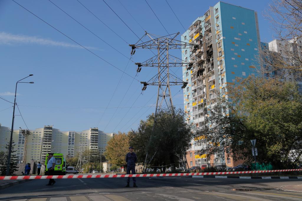 這是2024年9月10日在俄羅斯莫斯科州拉緬斯科耶拍攝的在無(wú)人機(jī)襲擊中受損的建筑。新華社發(fā)(亞歷山大攝)