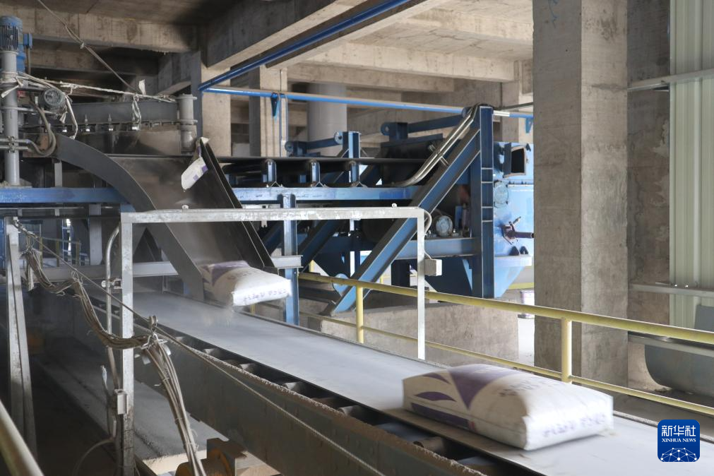 3月5日,在埃塞俄比亞萊米國家水泥廠,一袋袋水泥在傳送帶上經(jīng)過。新華社記者 劉方強(qiáng) 攝