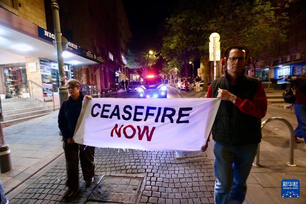 3月12日,民眾在耶路撒冷舉行游行,呼吁以軍在加沙地帶實(shí)現(xiàn)長(zhǎng)期?;?,停止在約旦河西岸的襲擊和流血。新華社發(fā)(賈馬爾·阿瓦德攝)