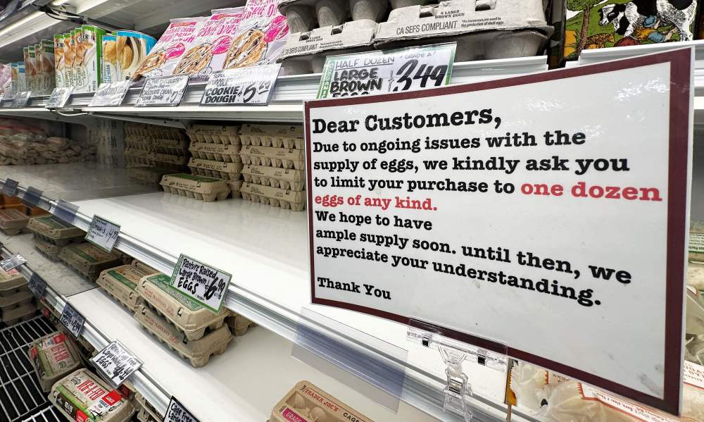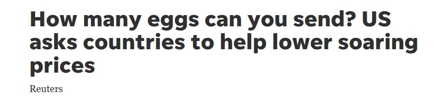雞蛋讓美國(guó)總統(tǒng)特朗普傷腦筋。路透社說,特朗普先前承諾1月20日上任首日就要讓美國(guó)蛋價(jià)降下來,但執(zhí)政滿一個(gè)月時(shí),美國(guó)蛋價(jià)較去年同期上漲59%。