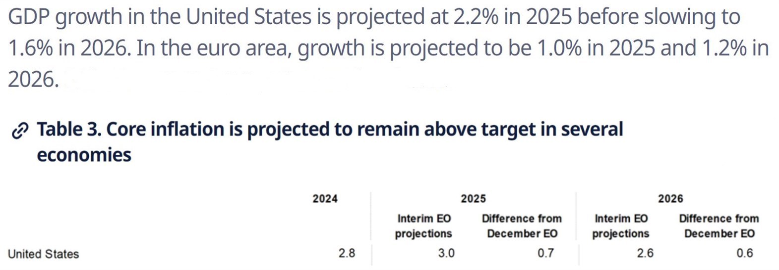 報告預(yù)計,受貿(mào)易壁壘增加等因素影響,歐元區(qū)經(jīng)濟2025年和2026年的增長率將均較此前預(yù)測下調(diào)0.3個百分點;美國經(jīng)濟2025年和2026年的增長率也將分別較此前預(yù)測下調(diào)0.2和0.5個百分點。