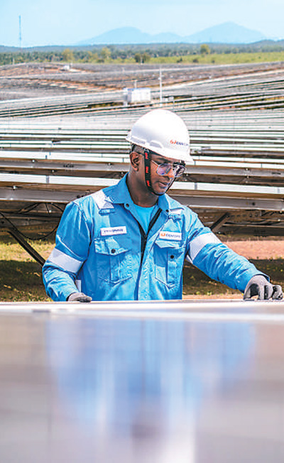 馬來西亞吉打州南部,由中企承建并運營的瓜拉基蒂光伏電站上,工人在巡檢設(shè)備。張紋綜攝(新華社發(fā))