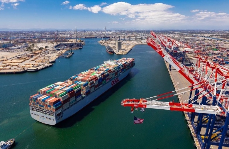 在截至4月25日的一周內(nèi),有十艘集裝箱船抵達了美國洛杉磯港和長灘港,所載貨物達55.5萬噸,這一數(shù)字與去年同期大致相當(dāng)。