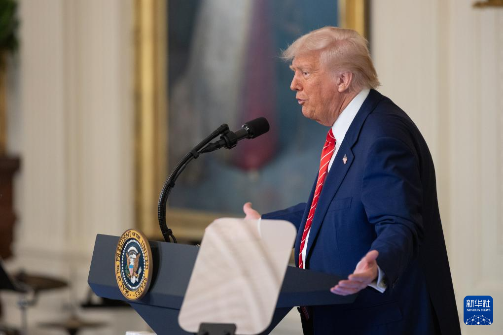 5月8日,美國總統(tǒng)特朗普在華盛頓白宮出席活動。新華社記者 胡友松 攝