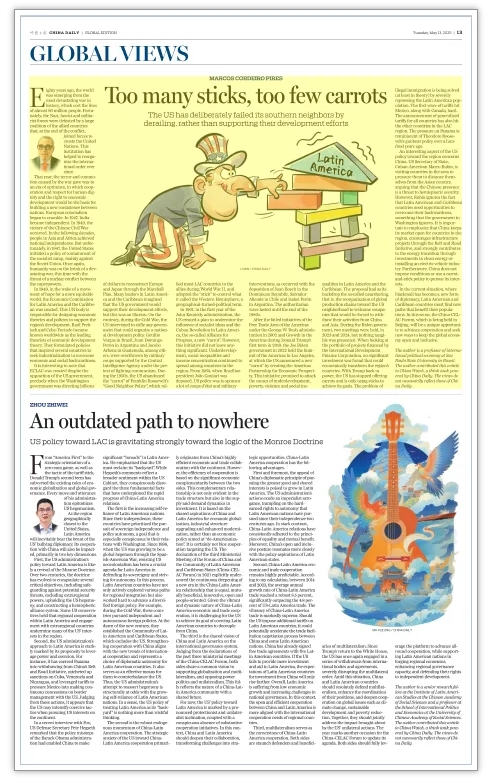有意思的是,美國對拉美地區(qū)政策中有一個(gè)方面跟中國有關(guān)。美國國務(wù)卿、古巴裔美國人魯比奧今年在拉美多國訪問期間,要求它們同中國保持距離,認(rèn)為中國的存在是對西半球安全的威脅。但是,盧比奧忽視了一個(gè)事實(shí),那就是拉美國家需要機(jī)會來擺脫落后面貌——這也是美國政府忽視的事實(shí)。需要強(qiáng)調(diào)的是,中國將繼續(xù)向拉美國家開放市場,在“一帶一路”框架下拉動基礎(chǔ)設(shè)施項(xiàng)目建設(shè),并通過投資清潔能源或建設(shè)電動汽車產(chǎn)業(yè),為該地區(qū)的能源轉(zhuǎn)型做出積極貢獻(xiàn)。不僅如此,中國的合作從不附帶政治條件,也不會采取“胡蘿卜加大棒”的政策來追求自己的利益。