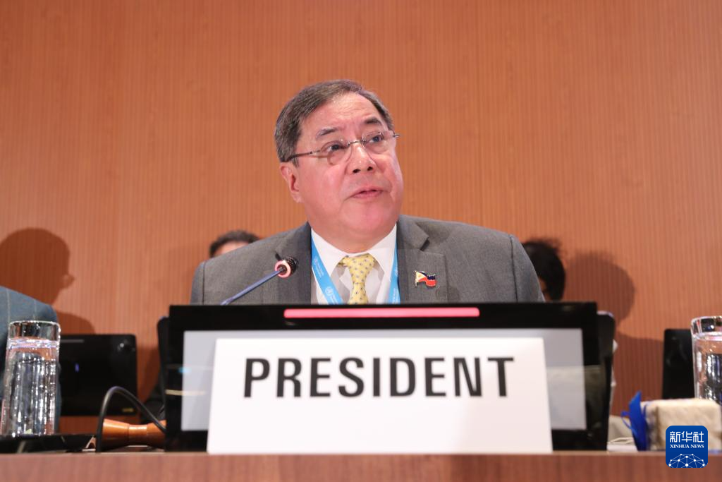 5月20日,在瑞士日內(nèi)瓦,第78屆世界衛(wèi)生大會(huì)主席赫爾博薩宣布審議通過“大流行協(xié)定”。新華社記者 杜哲宇 攝