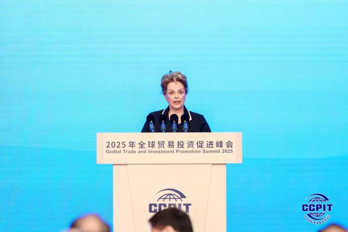 5月22日,由中國貿(mào)促會主辦的2025年全球貿(mào)易投資促進(jìn)峰會在北京舉行。新開發(fā)銀行行長、巴西前總統(tǒng)迪爾瑪·羅塞芙在開幕式致辭。中國貿(mào)促會供圖