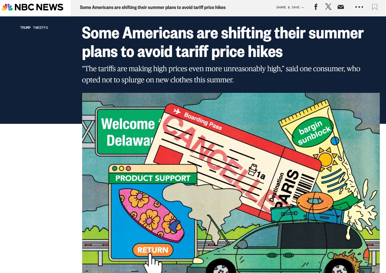 對于美國普通消費者而言,關稅也讓他們今年的夏天和往年有所不同。美國全國廣播公司網站近日的一篇文章說,美國政府的關稅政策,讓美國消費者對自身成本的擔憂持續(xù)加劇,他們不得不減少休閑活動和購物狂歡。