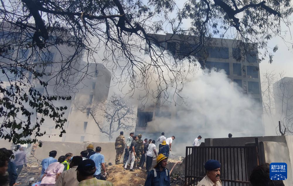 6月12日,在印度古吉拉特邦艾哈邁達(dá)巴德,人們在客機失事現(xiàn)場進行救援。新華社/印度聯(lián)合新聞社
