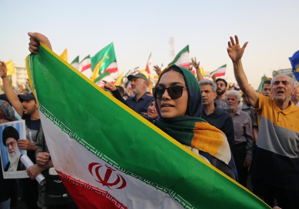6月24日,民眾在伊朗首都德黑蘭革命廣場(chǎng)慶祝伊以?;稹P氯A社發(fā)