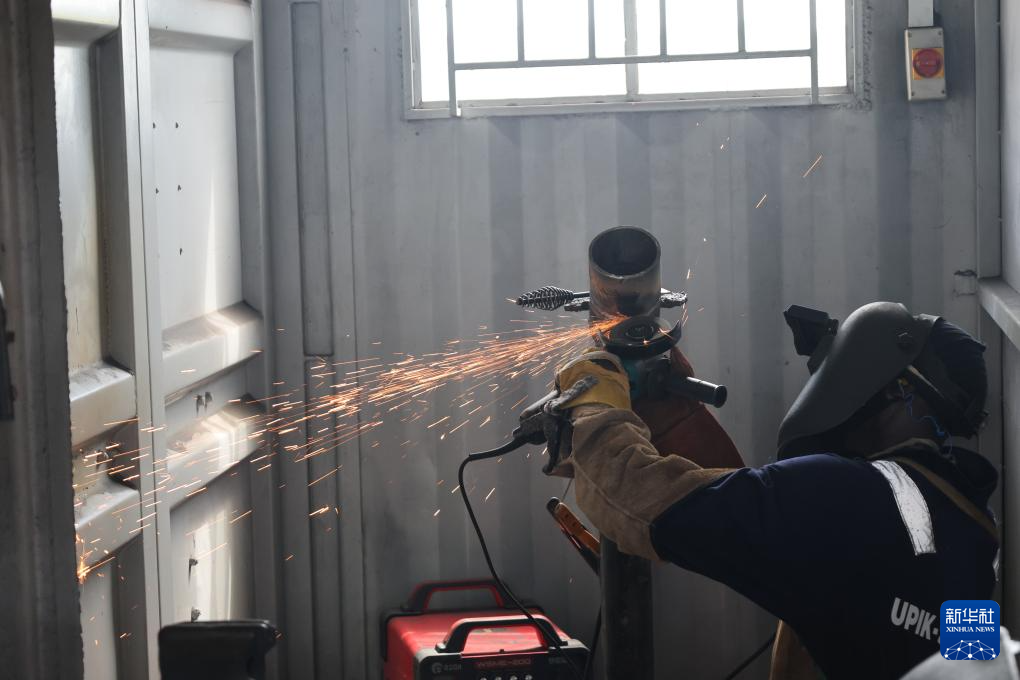 汗珠順著額角滑落,焊接面罩下是一雙沉穩(wěn)而專注的眼睛。23歲的烏干達(dá)青年西爾弗引弧、運(yùn)條,眼神聚焦在熔池上,槍尖一點(diǎn)壓著一點(diǎn),焊花飛濺中,隨著一條均勻的焊縫在最后一根薄壁方管上逐漸成型,西爾弗長(zhǎng)舒一口氣。