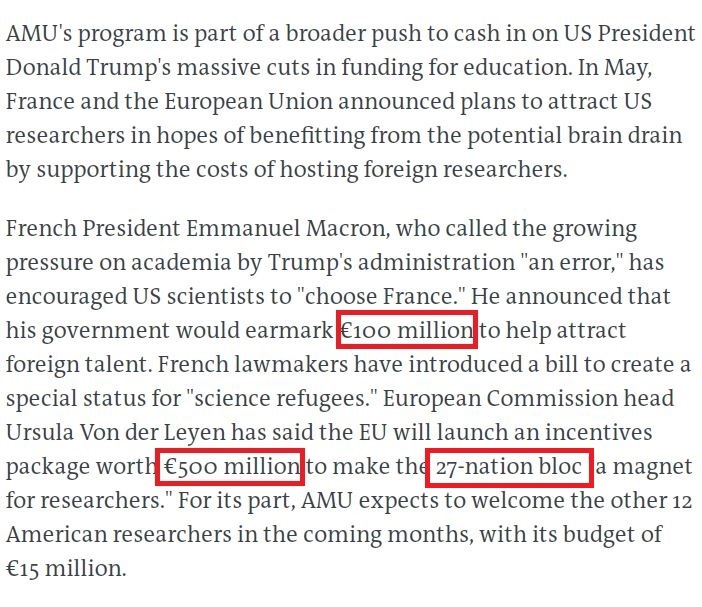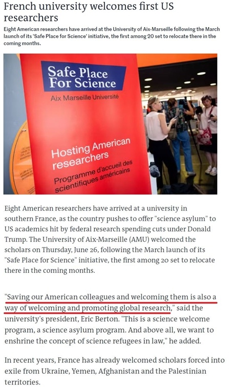 用艾克斯-馬賽大學(xué)校長埃里克·伯頓的話說,“拯救并歡迎我們的美國同事也是促進(jìn)全球科研事業(yè)的一種方式”。