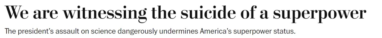 《華盛頓郵報(bào)》也刊文警告,美國現(xiàn)政府一直宣稱要讓美國“再次偉大”,但如今它卻正在對美國實(shí)力的真正來源——包括對科學(xué)研究的長期投資——造成嚴(yán)重的且可能無法彌補(bǔ)的損害。