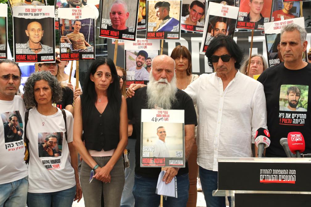 4月18日,在以色列特拉維夫的一處廣場(chǎng),被扣押人員家屬舉行記者會(huì),要求以政府推動(dòng)釋放被扣押人員。新華社發(fā)(吉德翁·馬科維奇攝/基尼圖片社)