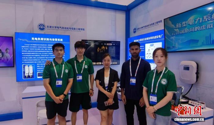 2024年6月,世界智能產(chǎn)業(yè)博覽會期間,穆罕默德·沙拉爾與導師和實驗室同學一起參與相關科研成果展陳工作。(天津大學 供圖)