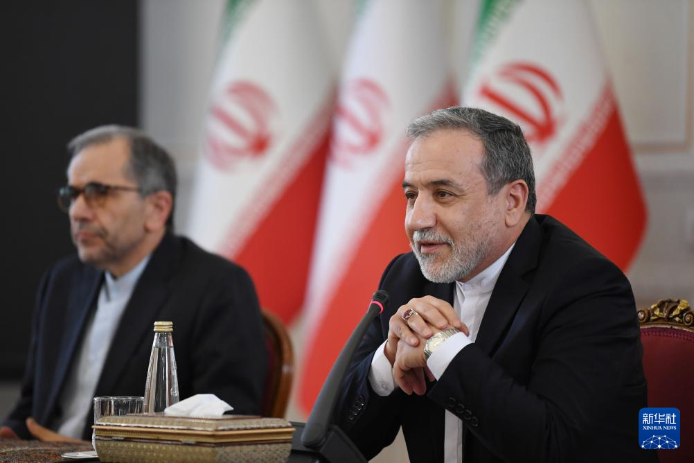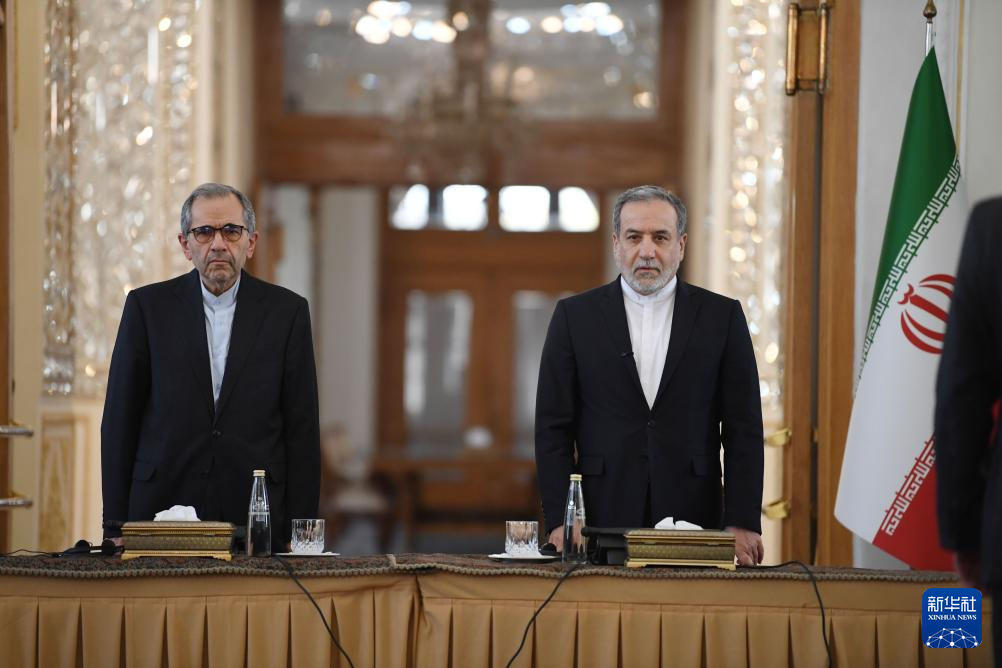 10月5日,在伊朗首都德黑蘭,伊朗外交部長(zhǎng)阿拉格齊(右)出席與多國(guó)駐伊朗外交人員舉行的會(huì)議。新華社記者 沙達(dá)提 攝