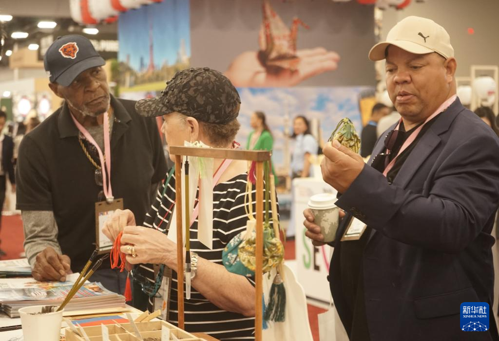 10月8日,在美國拉斯維加斯,參觀者在2025年美國國際會議與獎勵旅游展的中國展區(qū)傾聽講解。 新華社發(fā)(曾慧攝)
