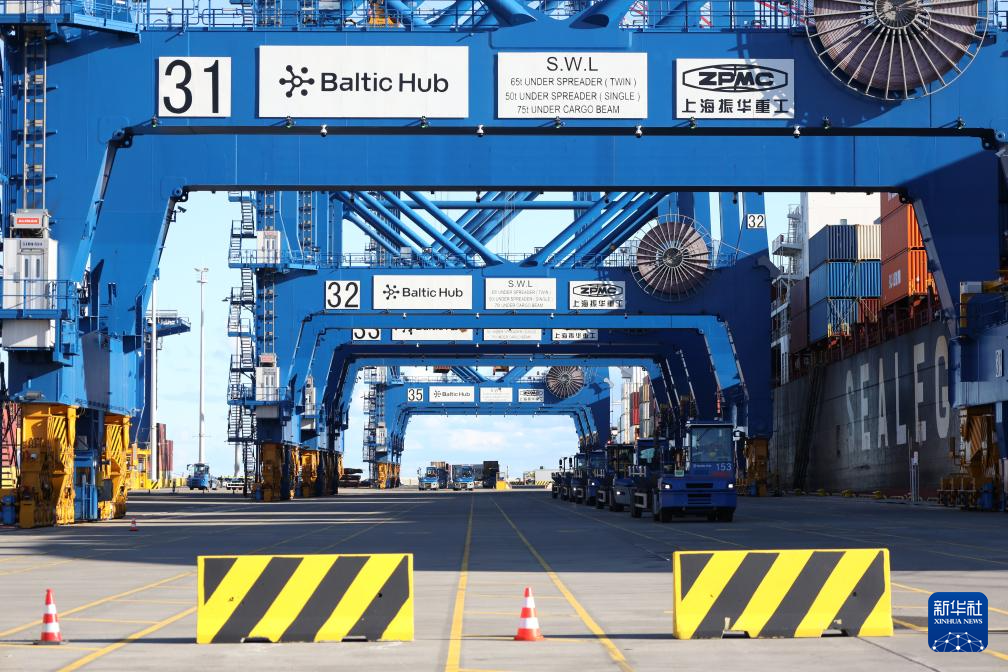 10月19日,從中國寧波舟山港出發(fā)的中歐北極快航航線首艘貨船抵達波蘭北部格但斯克港。新華社記者 崔力 攝