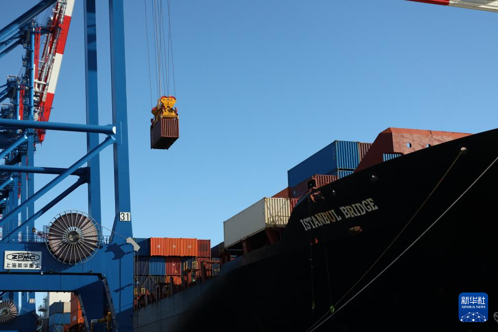 10月19日,在波蘭北部格但斯克港,從中國寧波舟山港出發(fā)的中歐北極快航航線首艘貨船進行裝卸工作。新華社記者 崔力 攝