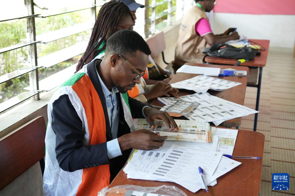 10月25日,工作人員在科特迪瓦經(jīng)濟(jì)首都阿比讓的一處投票站核實(shí)選民信息。新華社記者 張健 攝